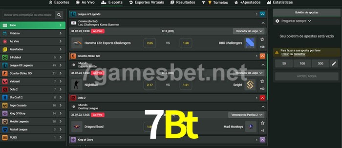 A aposta 7Bt oferece aos jogadores a experiência mais conveniente de apostas em eSports!